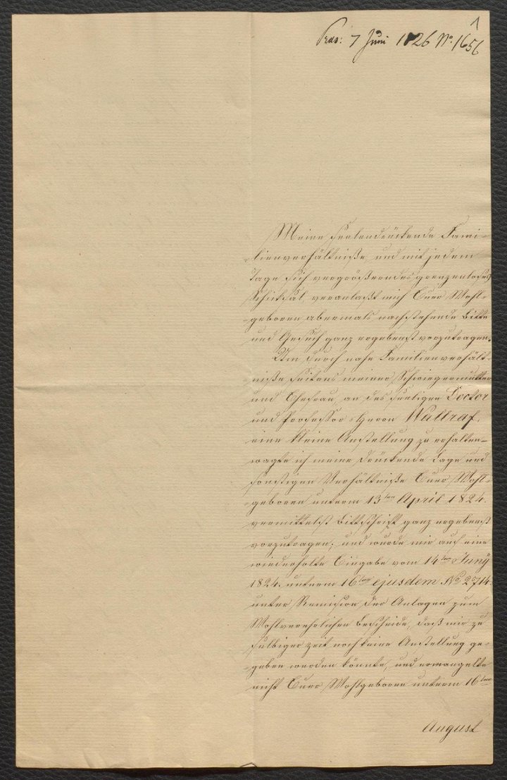 Bittschreiben des Schreibers Max Falcke vom 6. Juni 1826