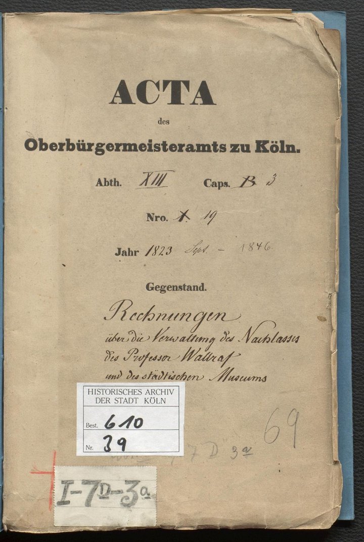 Archivsignatur: HAStK, Best. 610 (Wallraf-Richartz-Museum), A 39 (Rechnungen über die Verwaltung des Nachlasses des Professor Wallraf und des städtischen Museums). [Auszüge]