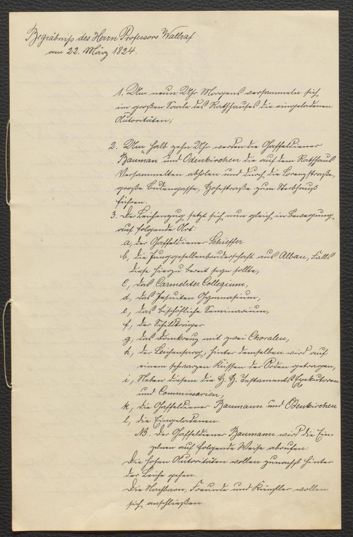 Ablaufplan von Wallrafs Begräbnis, Abschrift von 1912