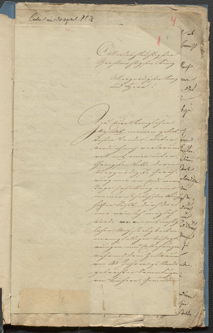 Gesuch Wallrafs zur dauerhaften Nutzung der Dompropstei an Friedrich Wilhelm III. vom 2. Juli 1821